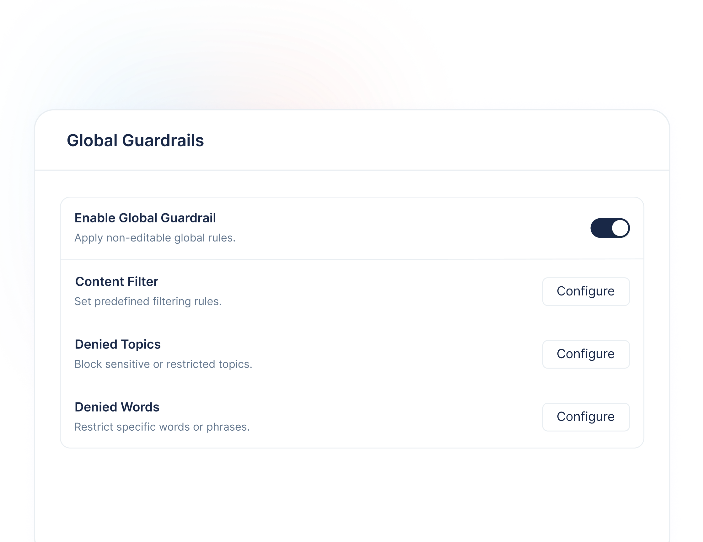 Control what AI says, does, and when it escalates - with audit trails on every interaction.