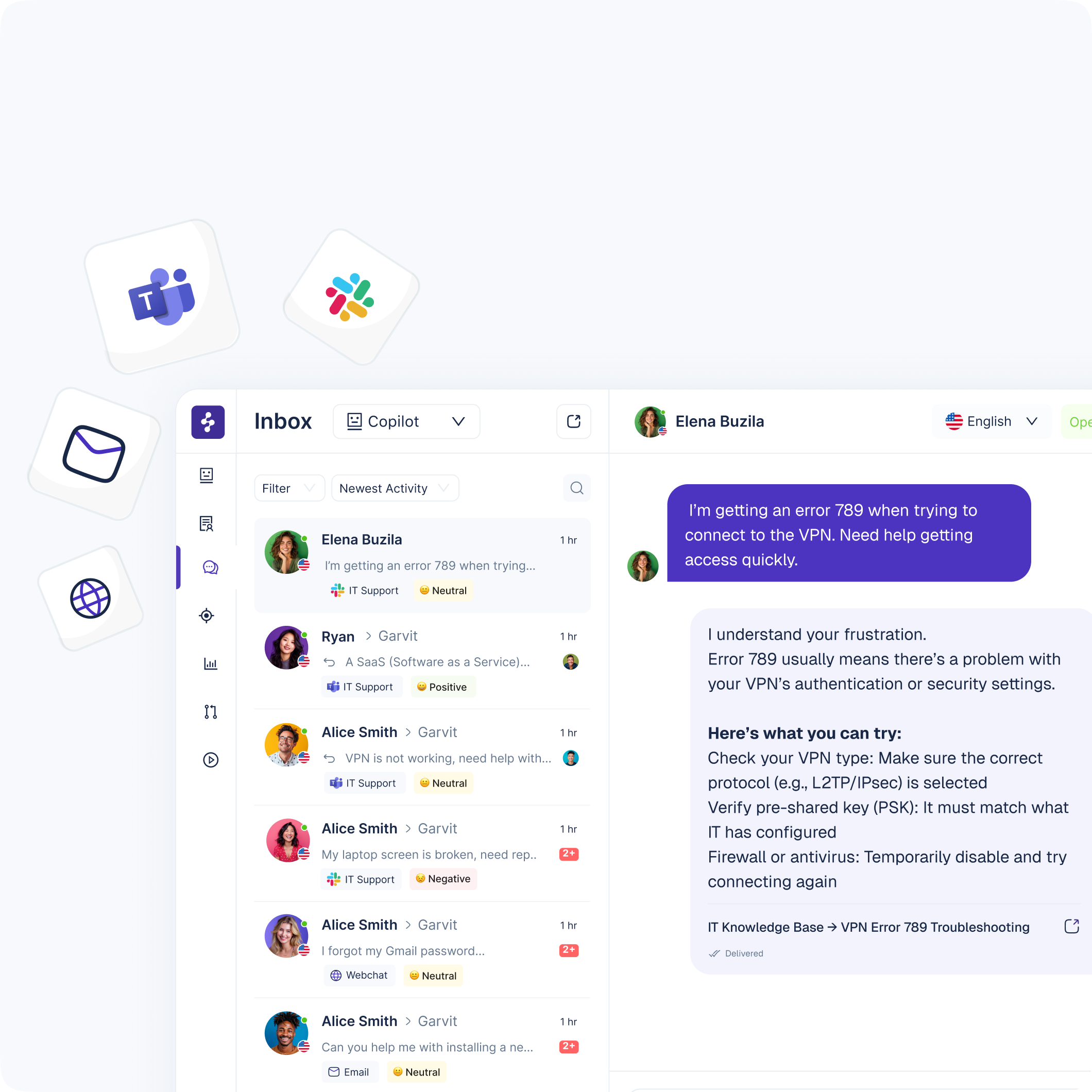 Shorter resolution times, fewer escalations, and compliant responses every time.