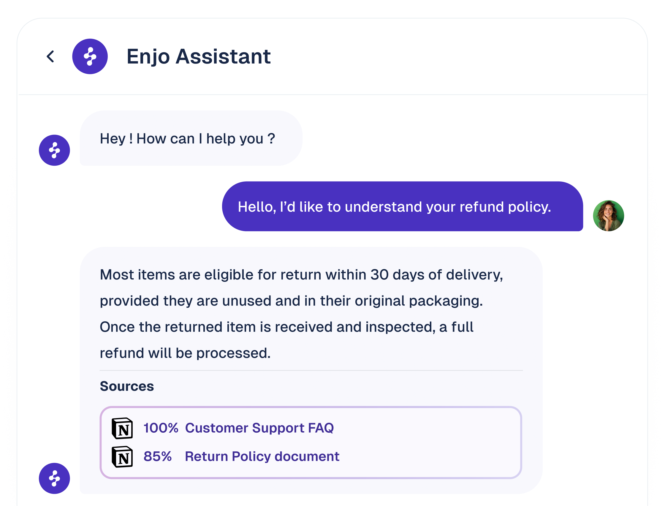 Deliver instant, accurate answers from your Notion workspace to any support channel.