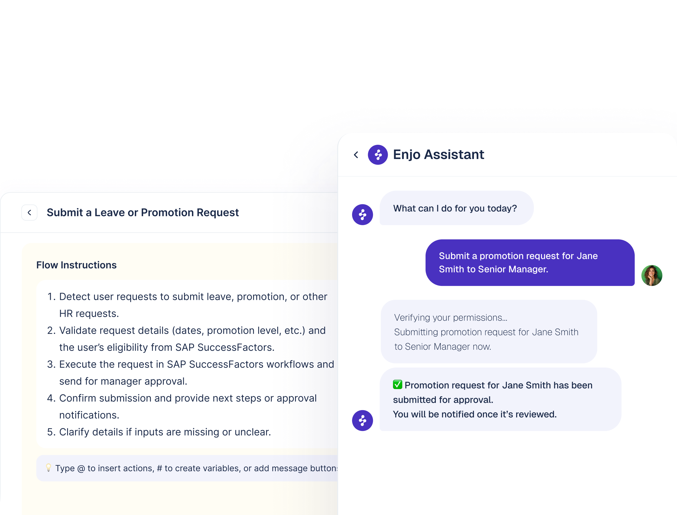 - Execute SAP SuccessFactors tasks through simple chat commands.