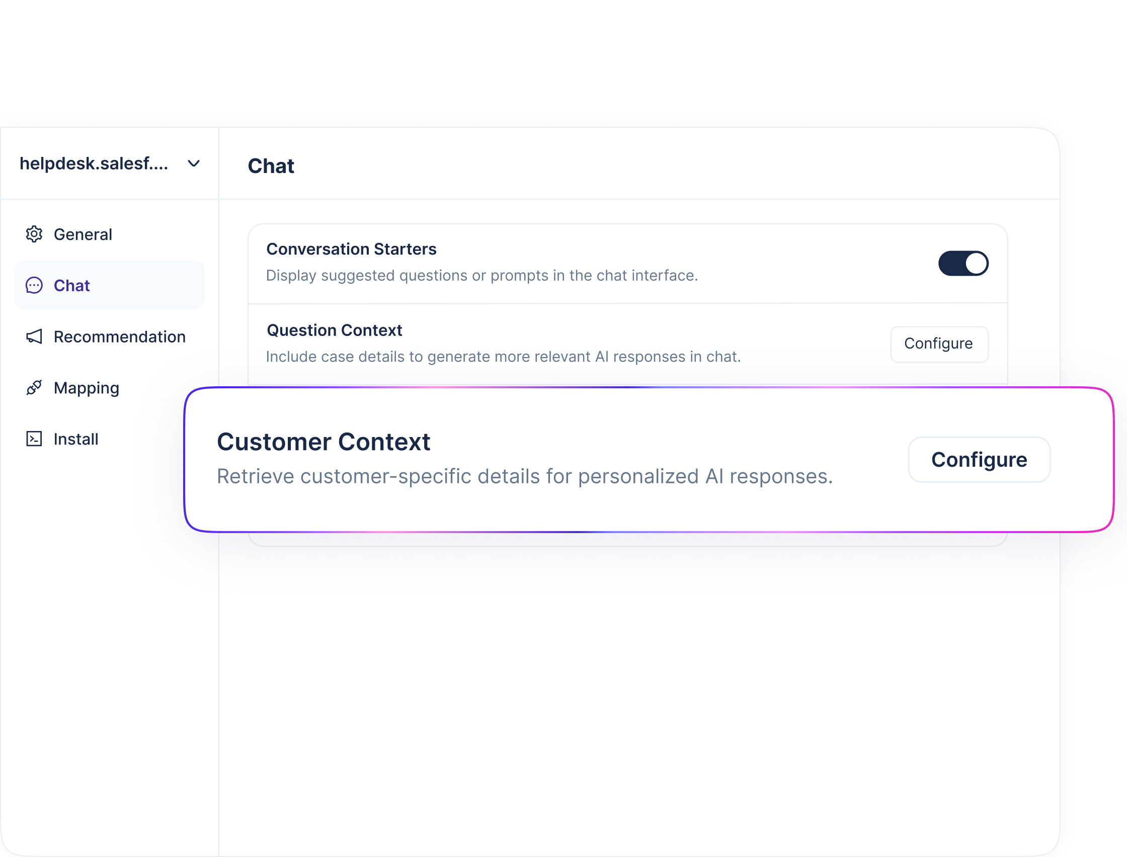 Replies are grounded in your connected knowledge and past resolutions, and tuned to your preferred tone and brand voice.