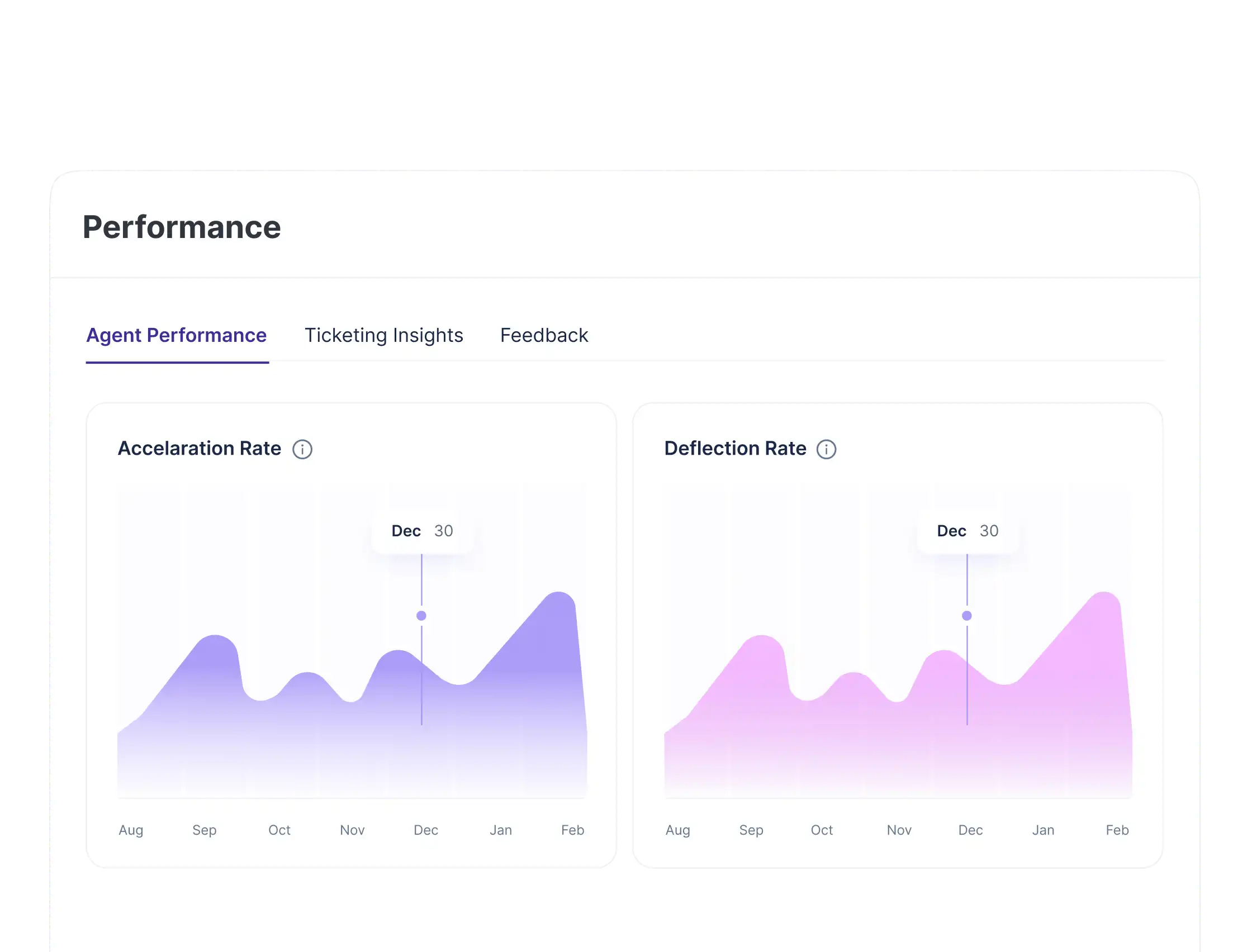 Measures resolution rates, AI accuracy, and feedback, giving support leaders clear insight into what to automate next and where to improve.