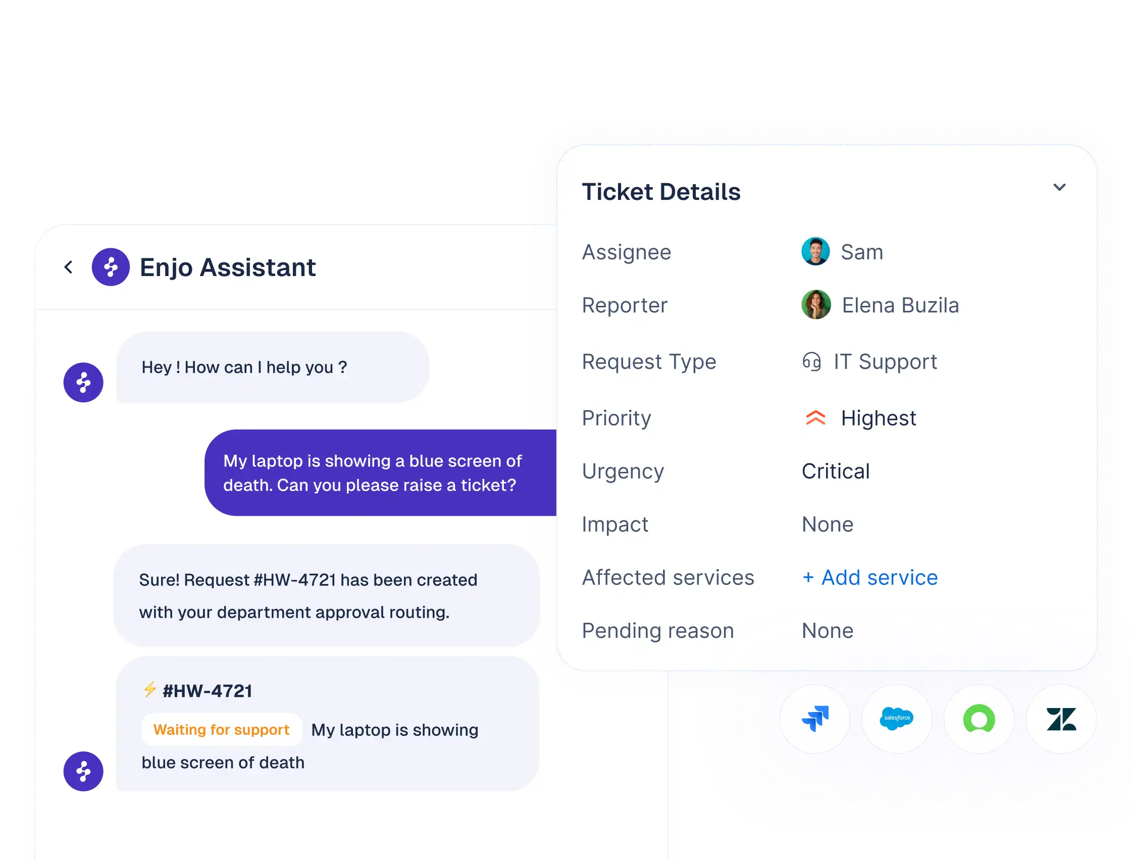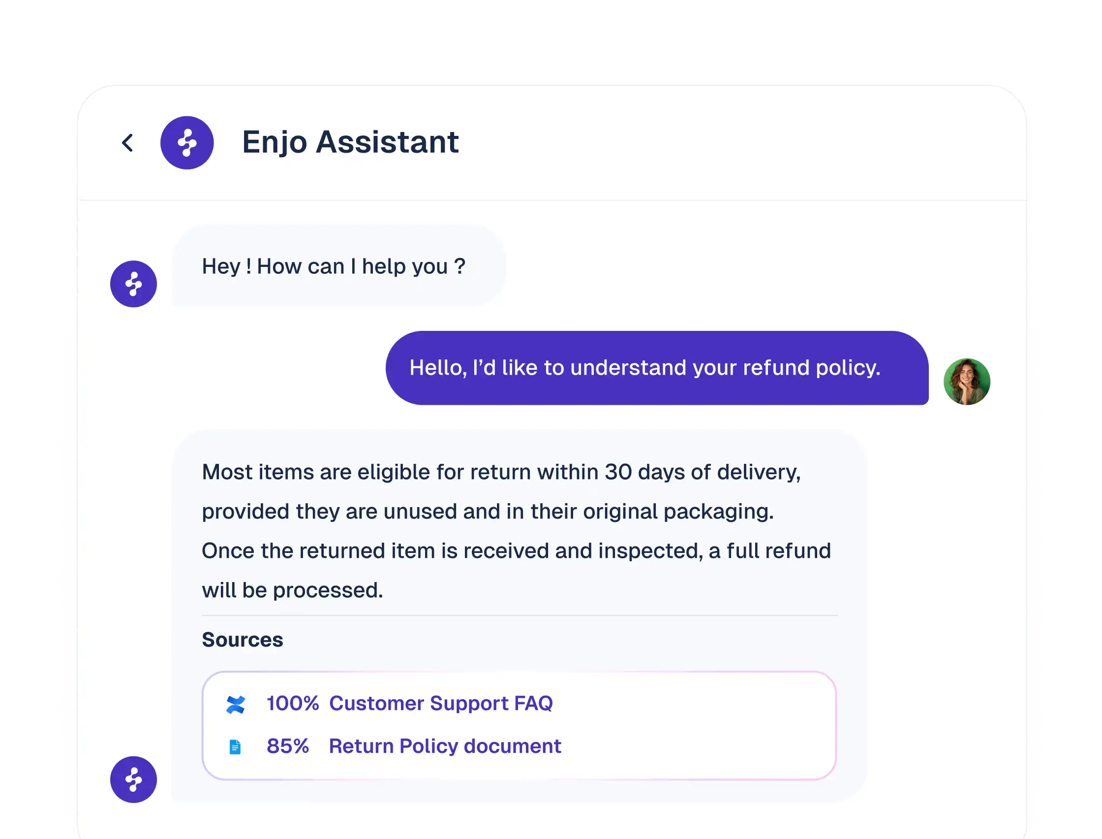 Works across Slack, Microsoft Teams, web chat, email, and more, so employees and customers get consistent, 24/7 support in the tools they already use.