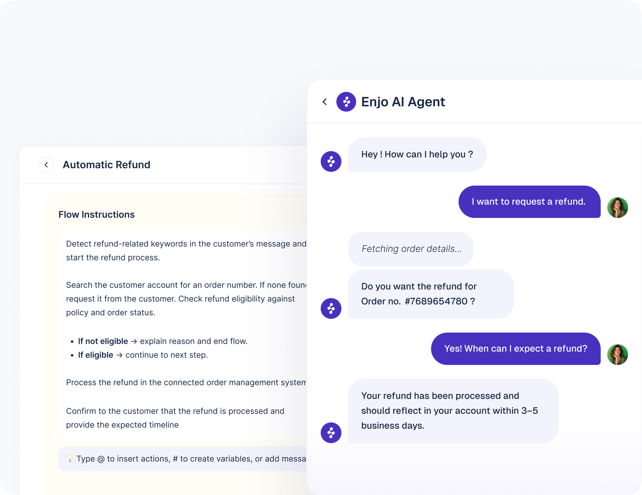 Connect trusted sources, create Enjo Answers, and define how the agent should respond and when it should escalate