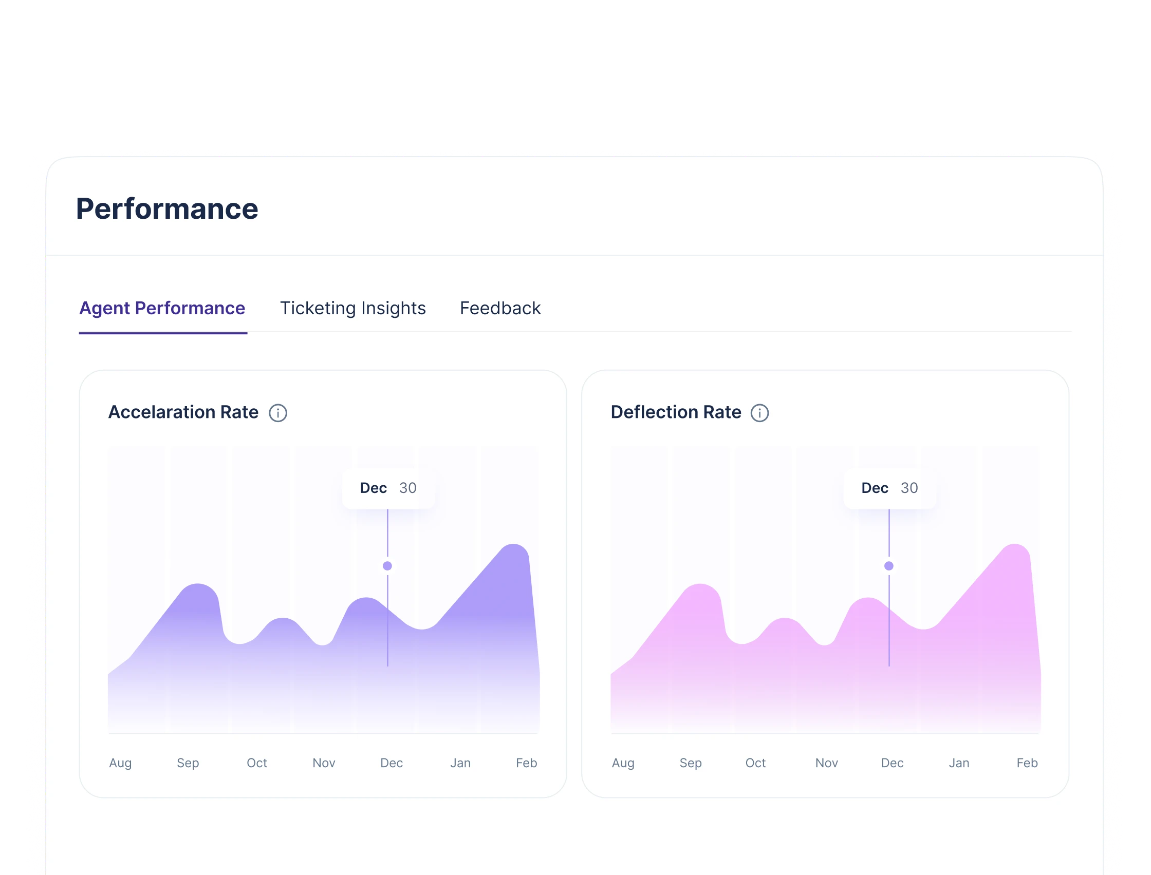 Track resolution rates, AI accuracy, and agent productivity to spot coaching opportunities and refine AI training.