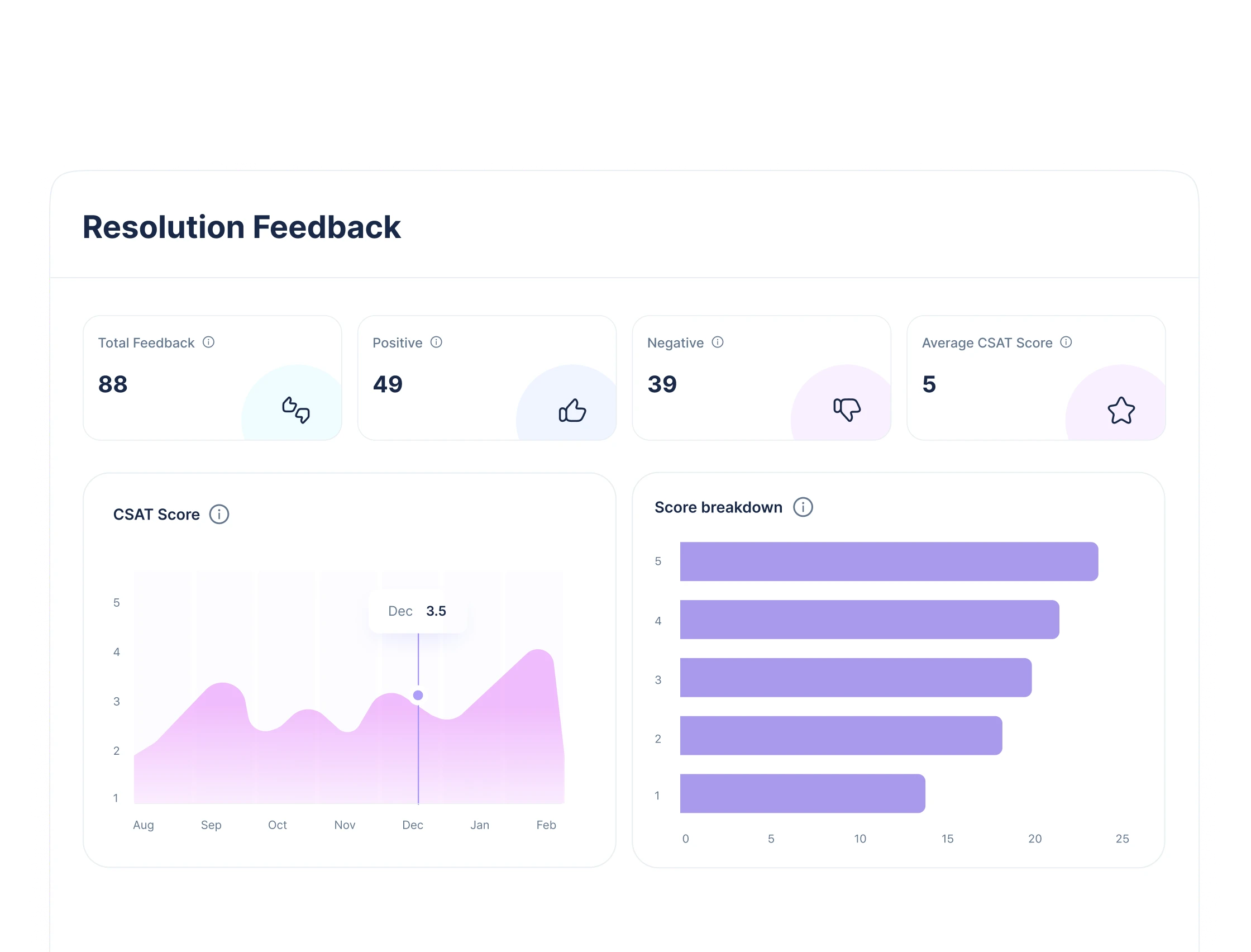 Capture real-time CSAT and sentiment trends to understand why scores change and act on negative feedback faster.