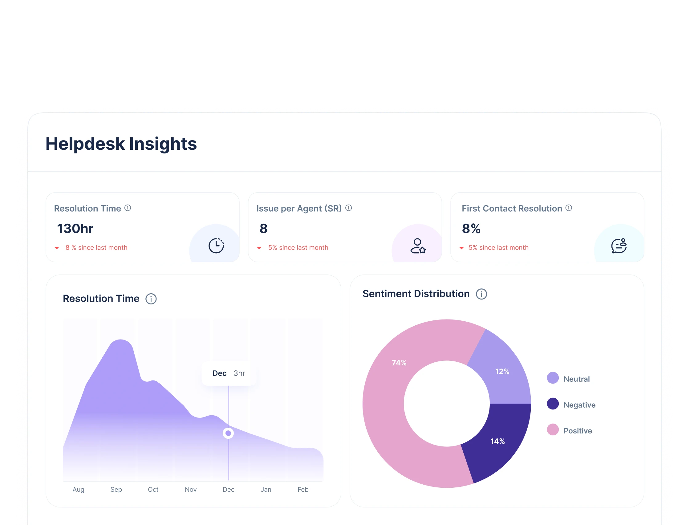 Get real-time clarity on AI performance, automation gaps, and customer sentiment, so you can fix root causes instead of just firefighting volume.