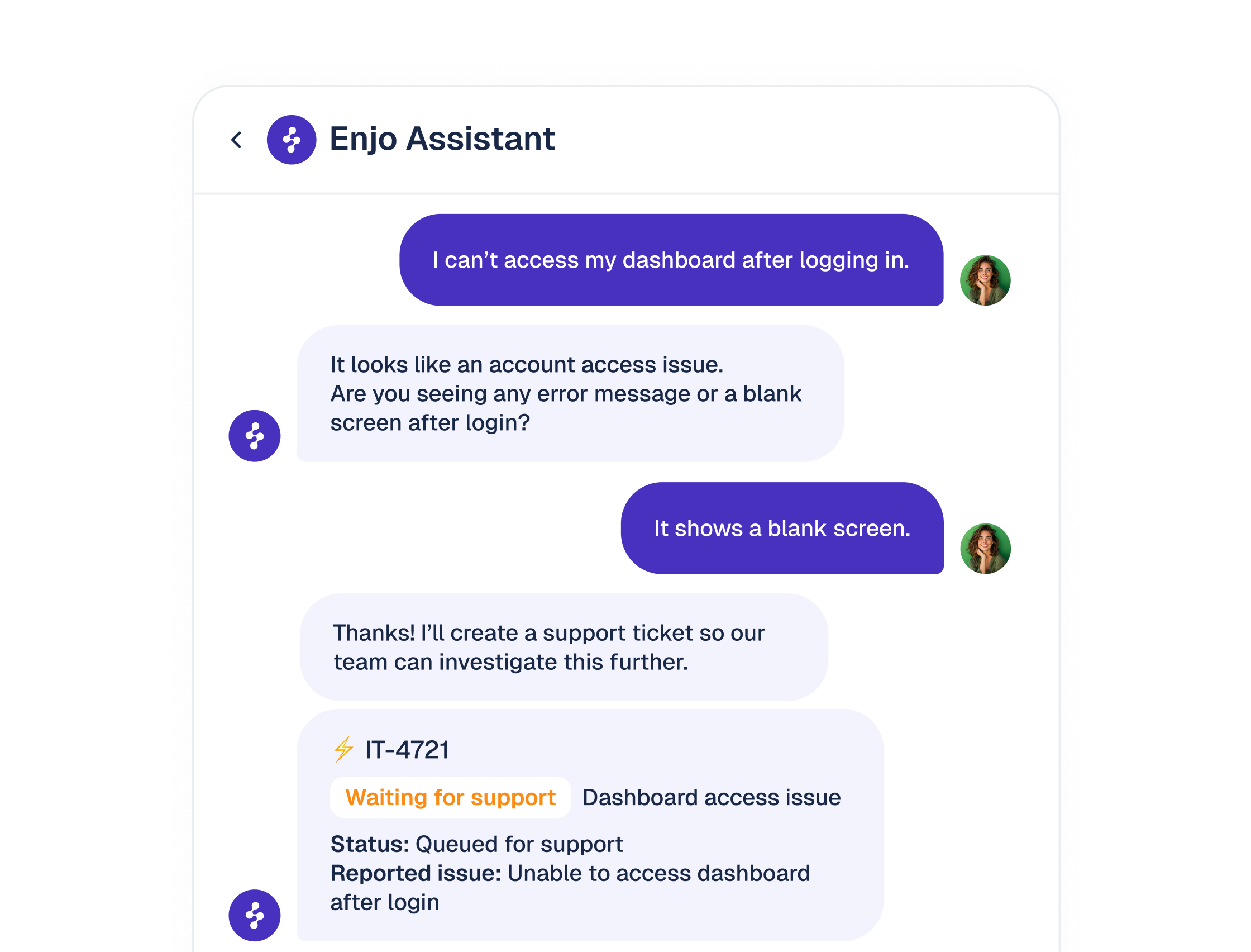 Enjo Help Center is AI-native: it resolves issues using live knowledge and recent resolutions, so self-serve stays accurate as your product changes.