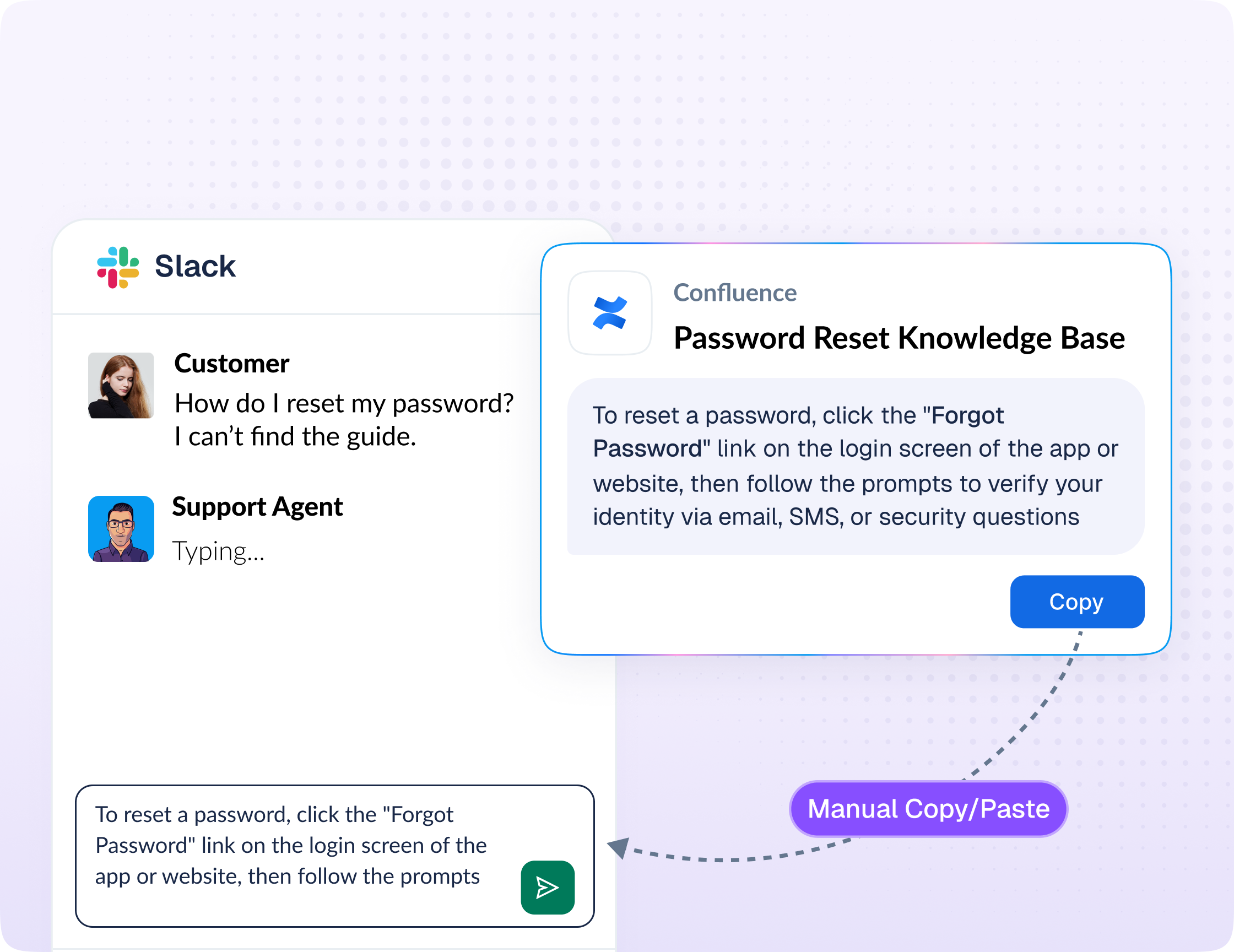 Every day, your support team gets the same questions in Slack - questions that already have answers sitting in Confluence. But customers and teammates don't search Confluence. They ask in Slack. And your agents spend time hunting for the right page, copying answers, and pasting them into threads.